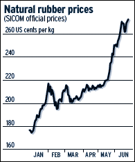 Spot rates were (Rs/kg): RSS-4: 95 (94.50); RSS-5: 92.50 (92); ungraded: 90 (89.50); ISNR 20: 90 (88.50) and latex 60 per cent: 69 (69).